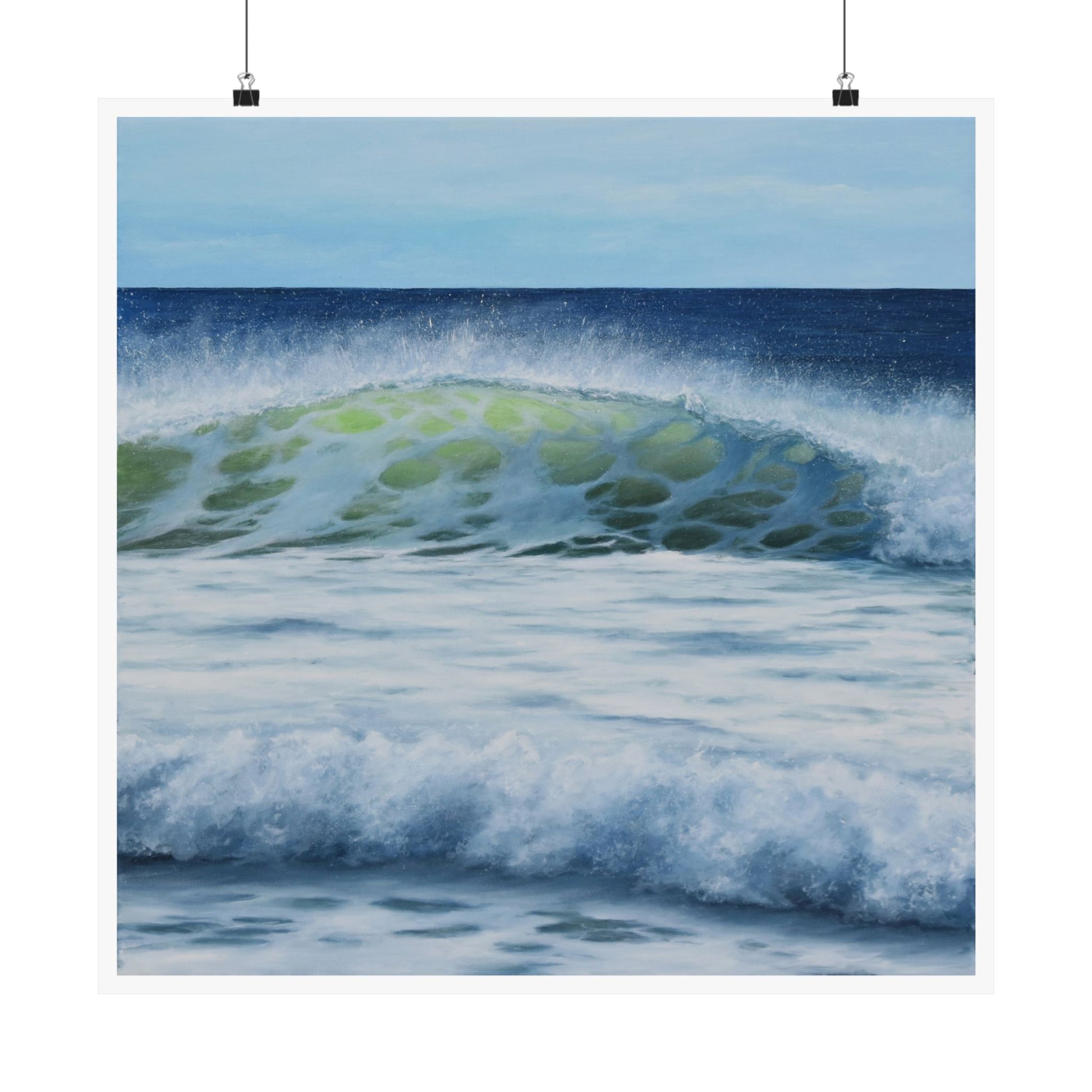 Bring the serenity of the ocean into your space with Western Winds, a beautifully printed premium matte horizontal poster. Based on Caitlin's original 30 x 30 inch oil painting, Western Winds captures the captivating moment of a breaking wave in vibrant, realistic detail. It offers an affordable alternative to the original artwork while still delivering exceptional quality and aesthetic appeal.